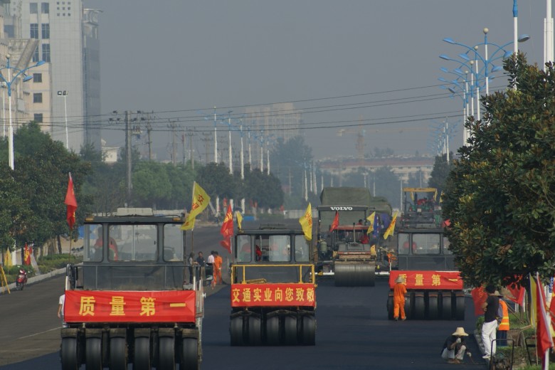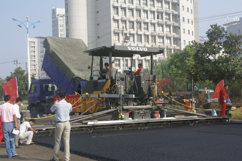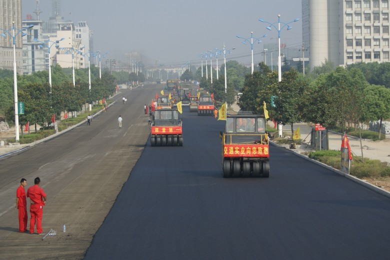 梅山路開(kāi)始鋪筑瀝青混凝土