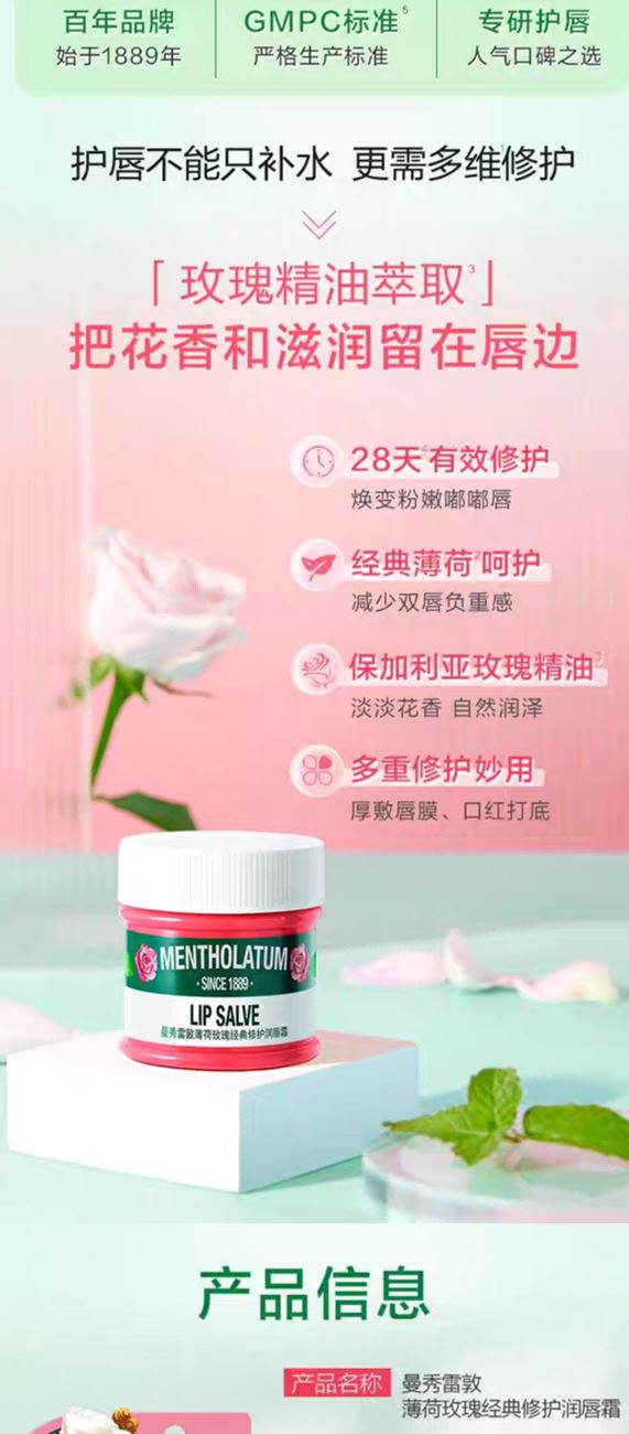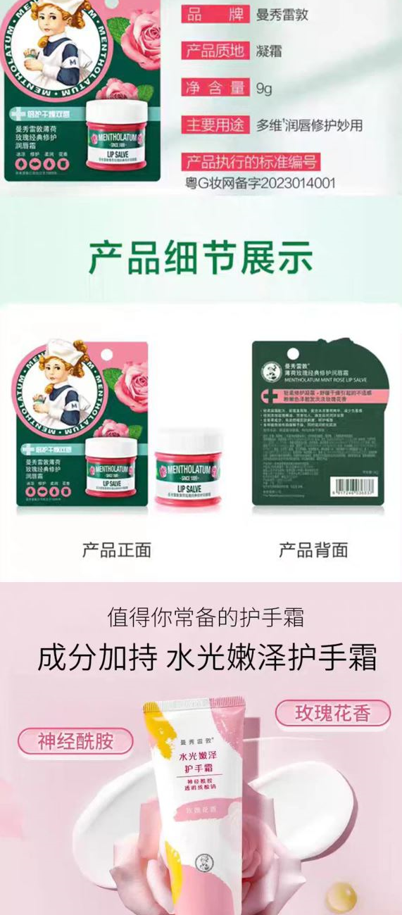 2.曼秀雷敦保濕滋潤(rùn)薄荷玫瑰唇霜9g*1(香型隨機(jī))