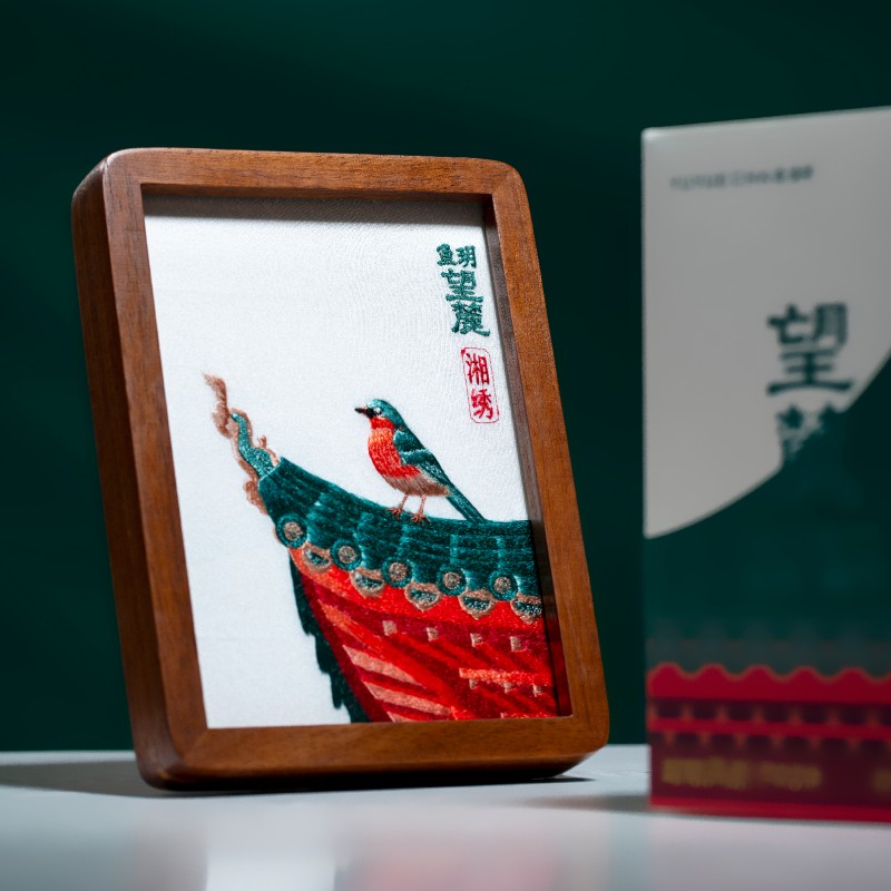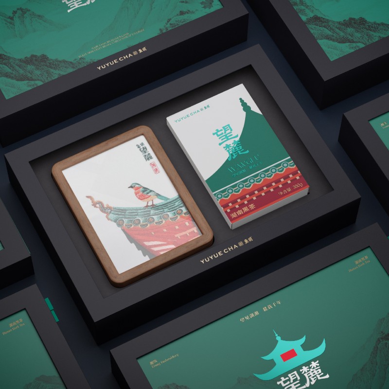 魚玥望麓非遺文創(chuàng)兩件套B款安化黑茶+湘繡擺件組合